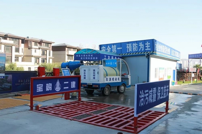 綠色施工落實到點。從公司到項目部始終將“綠水青山”的環(huán)保重責力扛在肩,積極響應,把治污減霾、揚塵防治工作作為施工內(nèi)容的重點之一。施工現(xiàn)場門口停放了灑水車和霧炮機,定期對現(xiàn)場路面進行清掃。采用圍擋、裸土覆蓋、垃圾歸類封閉、自動洗車臺等方法控制施工揚塵?,F(xiàn)場設(shè)置有環(huán)境檢測儀,與自動噴淋系統(tǒng)相連接,達到治污減霾的效果。