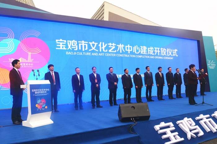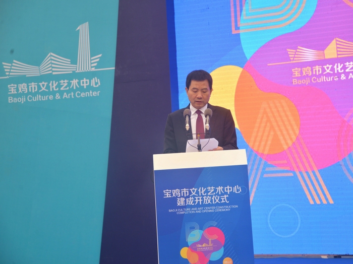 陜西省委宣傳部部長牛一兵宣布寶雞市文化藝術(shù)中心建成開放。副省長、寶雞市委書記徐啟方主持建成開放儀式。公司董事長、總經(jīng)理胥立受邀參加。