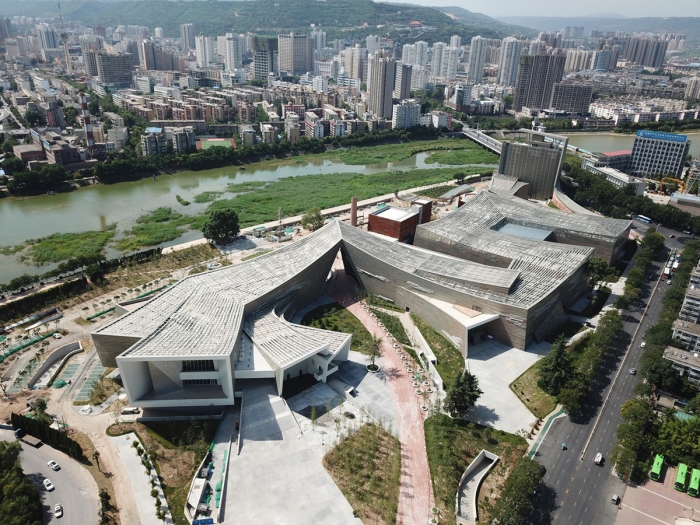 該工程由建筑大師崔愷院士主持設(shè)計,充分考慮舊建筑價值,保留城市記憶,因地制宜,采用了往返曲折的布局,融合了寶雞周風(fēng)秦韻的文化淵源,形成錯落有致、曲折綿延的建筑群落,猶如巨龍般昂首舒尾,欲飛沖天,彰顯出象征寶雞城市飛躍發(fā)展的偉岸形象。其獨(dú)特的現(xiàn)代簡約、環(huán)保、人性化設(shè)計理念和內(nèi)涵豐富的造型為這座文化藝術(shù)殿堂增加了靈動和魅力。