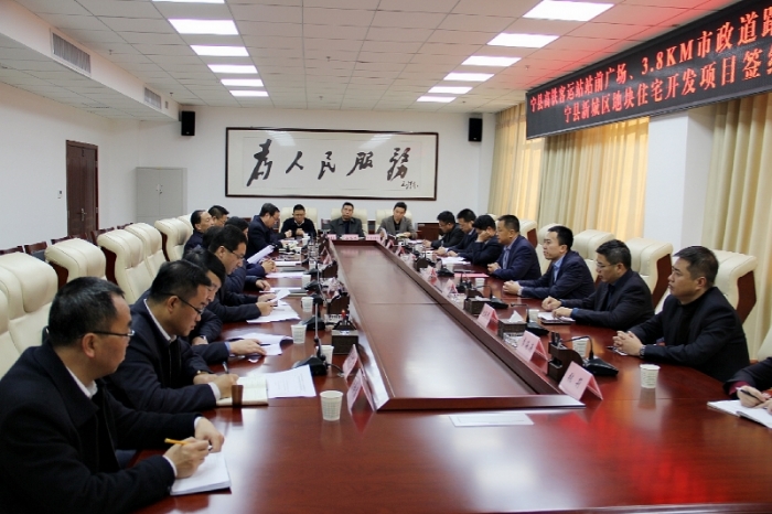 2019年12月4日,寧縣高鐵客運(yùn)站站前廣場、3.8KM市政道路投資建設(shè)工程及寧縣新城區(qū)地塊住宅開發(fā)項(xiàng)目簽約儀式在寧縣人民政府順利舉行。寧縣縣委書記侯昌明,縣委副書記、縣長李鵬飛,縣委常委、常務(wù)副縣長杜豐,縣委常委馬應(yīng)樂,發(fā)改局、自然資源局、住建局、商務(wù)局等各部門主要負(fù)責(zé)人出席儀式。公司董事長胥立、總經(jīng)理張小揚(yáng)、副總經(jīng)理李紅軍、副總經(jīng)理沈?yàn)槊?、副總?jīng)濟(jì)師王紅波出席簽約儀式,相關(guān)部門經(jīng)理和工作人員隨行。