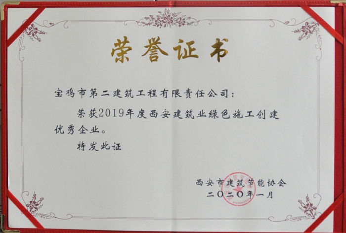 近日,從西安市建筑節(jié)能協(xié)會(huì)傳來(lái)喜訊,公司榮獲“2019年度西安建筑業(yè)綠色施工創(chuàng)建優(yōu)秀企業(yè)”稱號(hào),公司董事長(zhǎng)胥立榮獲“2019年度西安市建筑節(jié)能行業(yè)優(yōu)秀企業(yè)家”稱號(hào)。